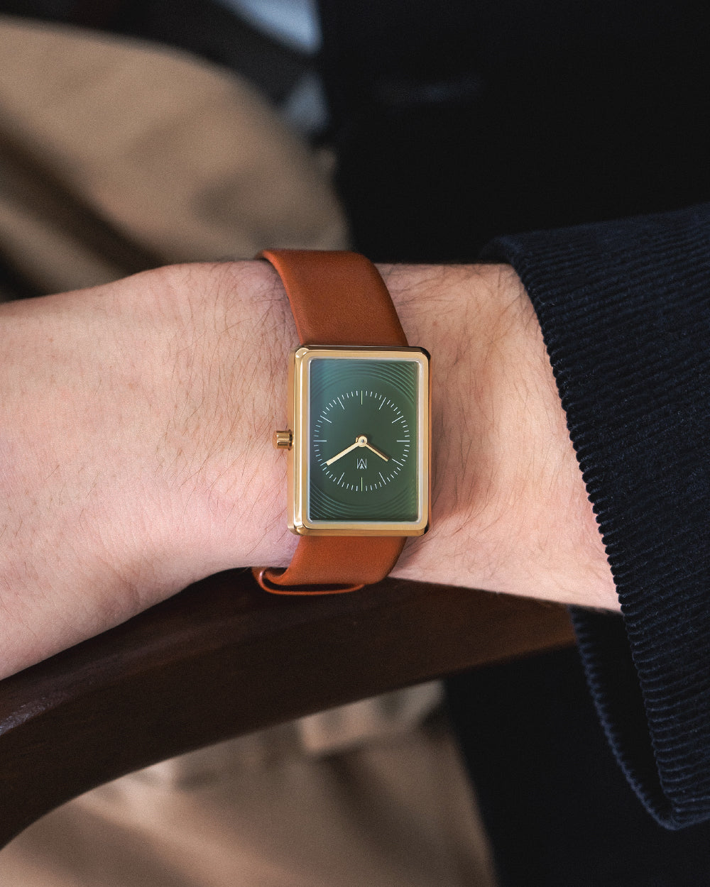 The Deco series distills Art Deco’s ornate flourish into refined restraint. Embossed dial patterns meet polished metal case and hands—square watches that endure beyond trends, understated yet unmistakably singular. ⁠