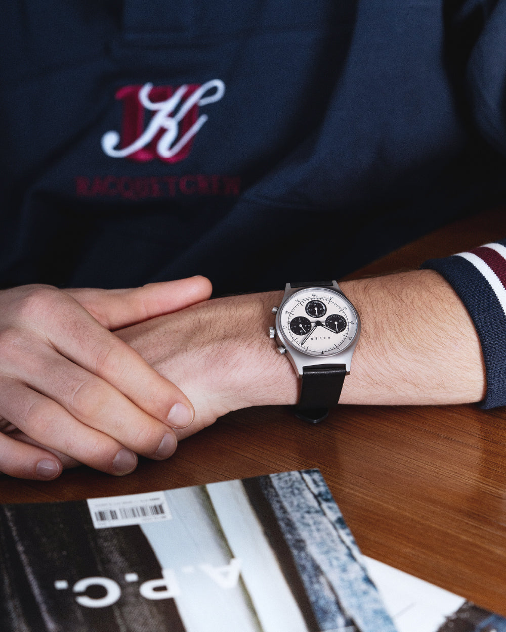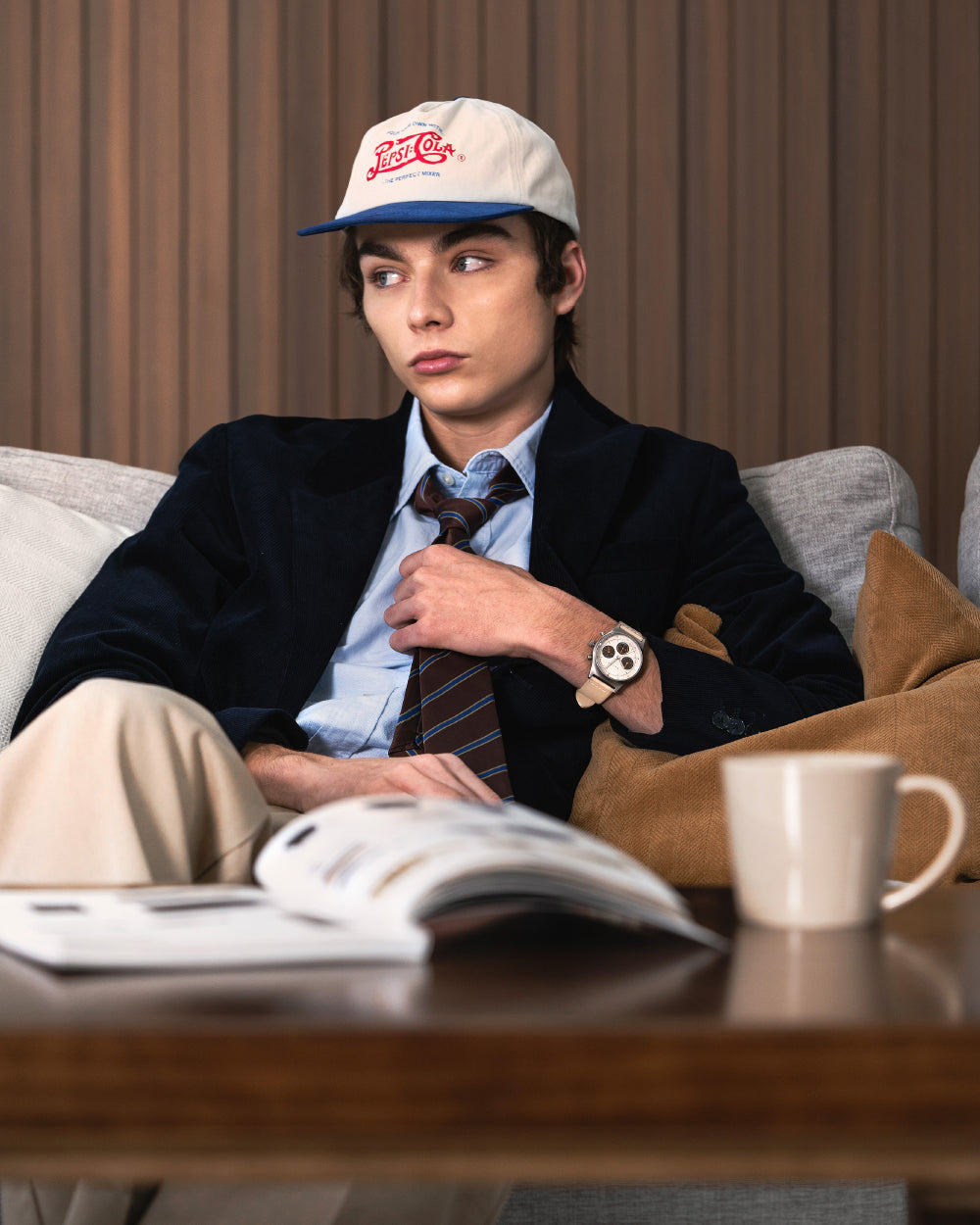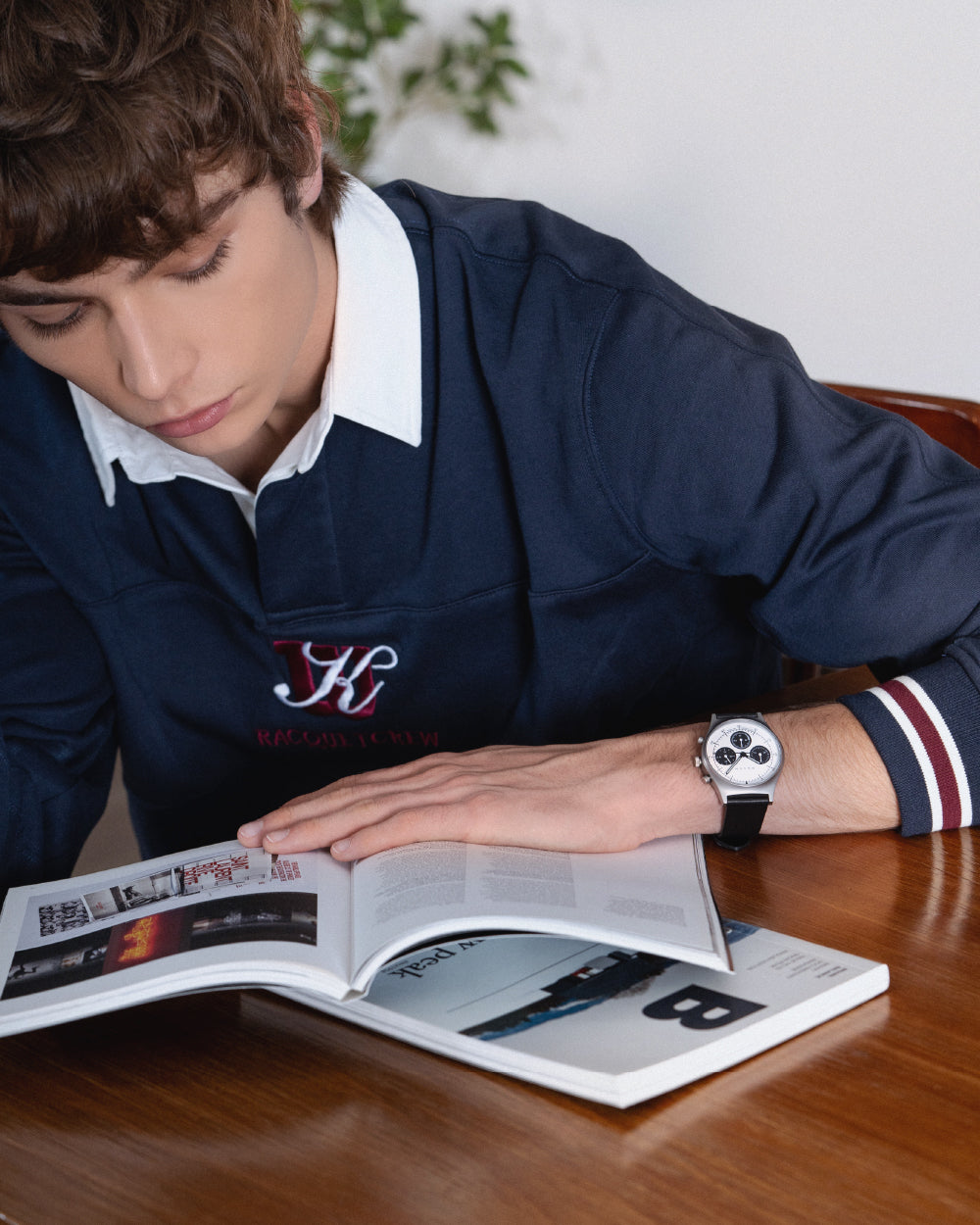 Its functional, colour-pop three-eye dial, vintage tones, streamlined case, and solar heart echo Ivy League’s timeless aesthetic—refined, enduring, quietly assured.