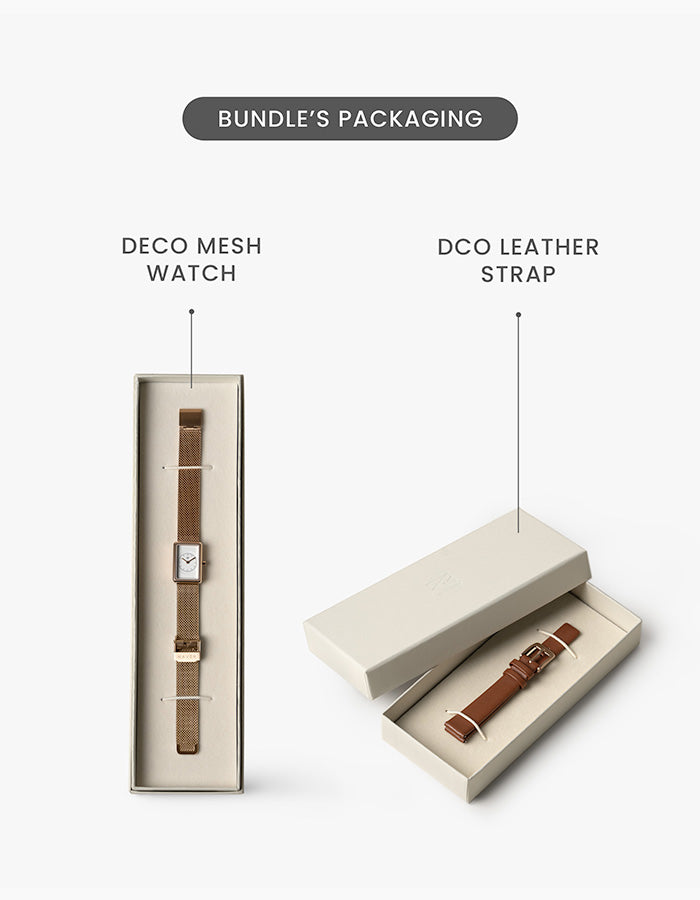 Sleekly packed with a stainless steel mesh strap watch and an extra quick-release leather strap, this bundle makes style changes simple, fast, and tool-free.